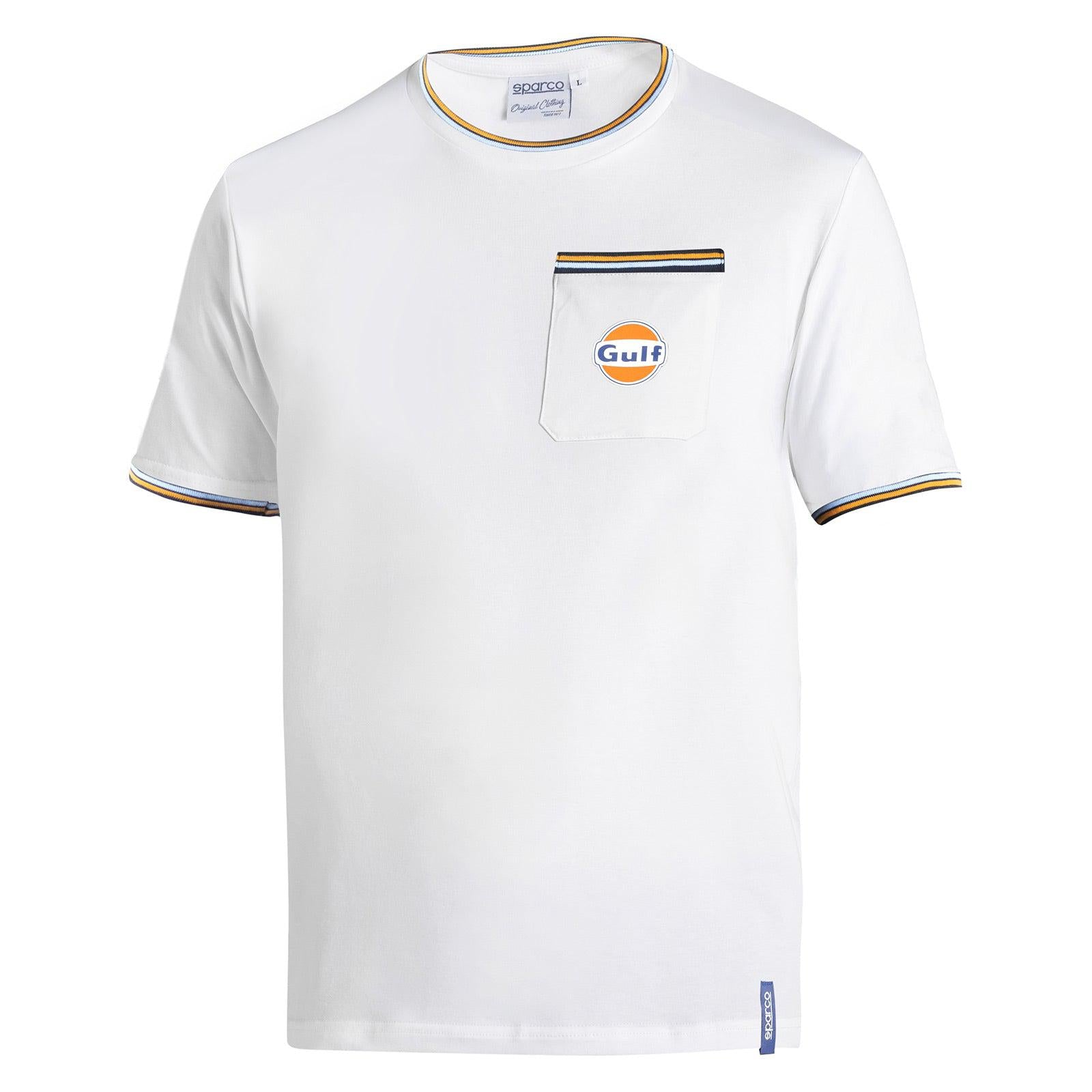 Combine elegancia y sutileza con la camiseta Sparco Gulf Pocket en blanco. Con un bolsillo en el pecho decorado con el logo Gulf, este modelo refleja a la perfección el espíritu de la legendaria competición automovilística a la vez que añade un toque refinado a su atuendo.