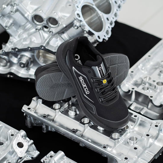 Las Sparco Teamwork Linford S1PS ESD SR FO HRO combinan el estilo running con las prestaciones técnicas. Diseñado con una parte superior transpirable de microfibra reforzada en 3D, garantiza comodidad y durabilidad incluso en uso intensivo. Gracias a su entresuela de EVA superconfort y a su suela de caucho FO+HRO, combina amortiguación, seguridad y un agarre óptimo. Conforme a la norma EN ISO 20345:2022, es ideal para los entornos dinámicos que requieren a la vez protección y confort duradero.