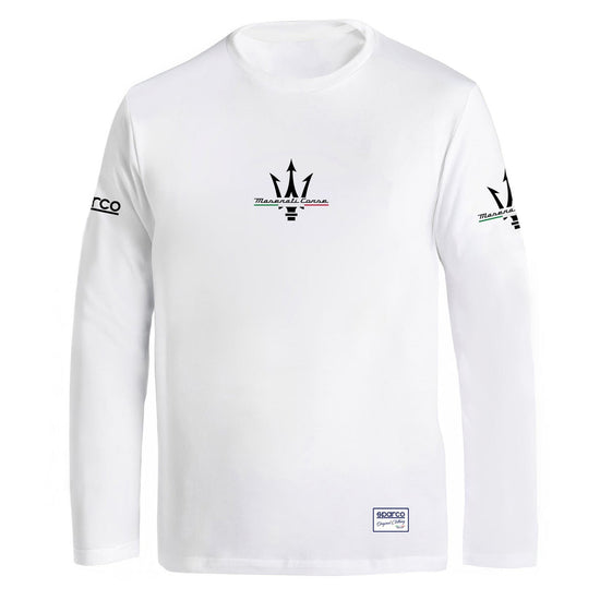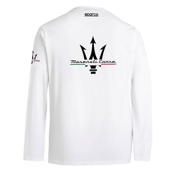 Descubre la camiseta de manga larga Sparco x Maserati, el equilibrio perfecto entre confort y estilo racing italiano.