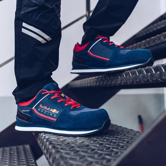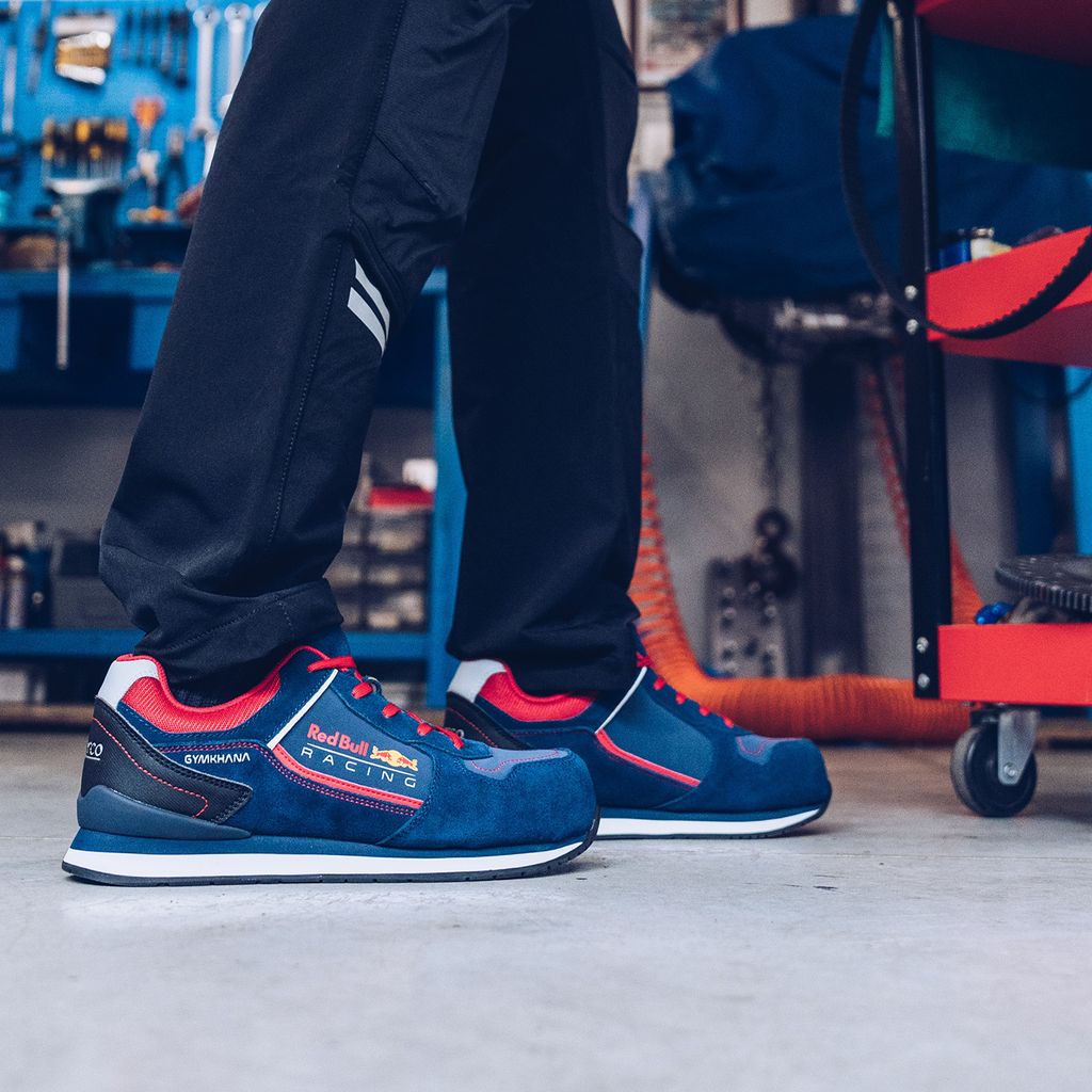 La Sparco Gymkhana Red Bull S3S ESD SR FO HRO combina el estilo inspirado en la F1 con la máxima seguridad. Diseñado con una parte superior de nobuk hidrófugo y ante de alta calidad, incorpora una puntera de fibra de vidrio de 200 J, una suela textil resistente a los pinchazos y una suela de goma EVA/nitrilo optimizada para ofrecer resistencia y agarre. Perfecto para entornos industriales exigentes, también presenta un diseño exclusivo de malla Bull Racing.