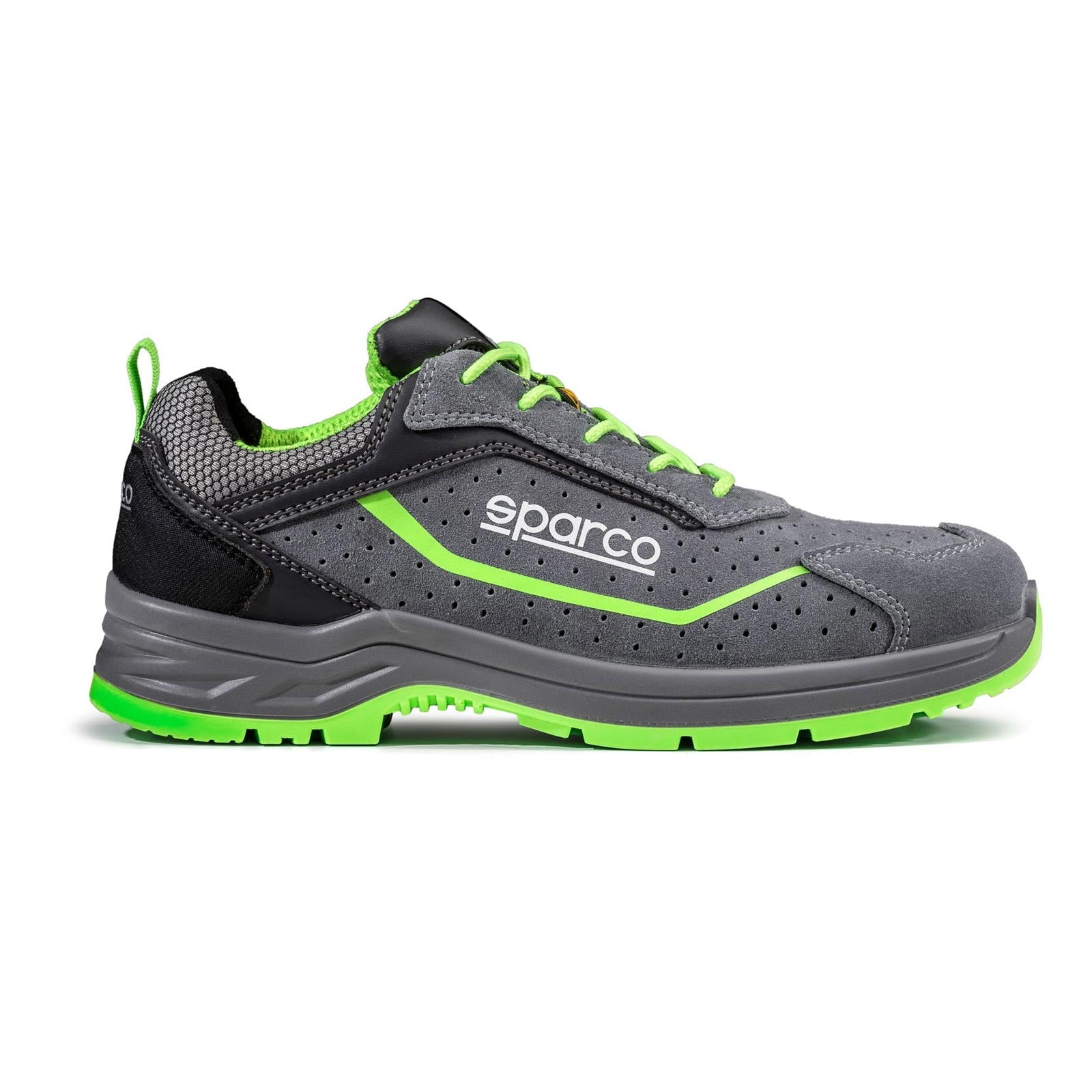 La Sparco Indy S1PS Felix ESD SR FO LG es un calzado de seguridad bajo en cuero serraje perforado, que combina transpirabilidad y seguridad para un uso diario. Conforme a la norma EN ISO 20345:2022, incorpora una puntera de fibra de vidrio de 200 J, una plantilla textil anti-perforación y una suela exterior Flexgrip+ que ofrece una adherencia máxima en suelos lisos, escaleras y escalas. Gracias a su forro 3D transpirable y su amortiguación en PU de doble densidad, garantiza un confort duradero. Con un peso de 480 g (talla 42), es perfectamente adecuado para los sectores de la logística, el mantenimiento y la industria ligera, combinando ligereza, protección y confort.