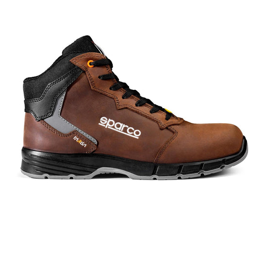 El Sparco Targa Sandro S3S ESD SR FO combina sobriedad y máxima protección. Su parte superior de piel liso e hidrófugo garantiza una mayor durabilidad, mientras que la suela Street-Tech de doble densidad garantiza un confort óptimo y un excelente agarre. Conforme a la norma EN ISO 20345:2022+A1:2024, el modelo Sandro ofrece una protección completa para un uso profesional intensivo.